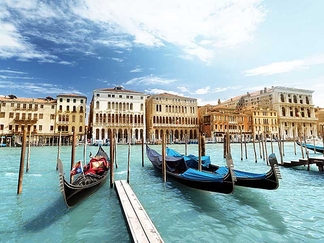 Take a gondola ride down the two-mile long Grand Canal. The canal is lined with magnificent buildings that epitomize the architectural beauty of Venice offering a panorama of superbly detailed facades.